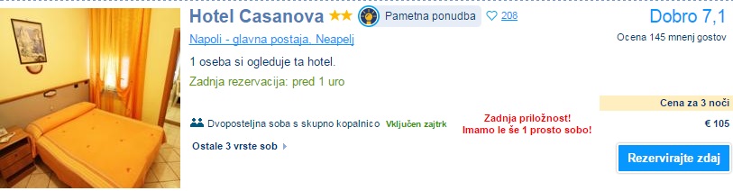 Neapelj – idealna priložnost za skok v preteklost. Ponujamo vam izlet v najbolj temperamentno mesto Italije, mesto z bogato zgodovino in rojstni kraj pizze. Ne zamudite pa seveda priložnosti za ogled mogočnega vulkana Vezuva in Pompejev, ki so ostali ujeti v trenutku časa. Povratna letalska vozovnica + 3 nočitve z zajtrkom vas bo prišlo samo 102 €/osebo, če potujeta 2 osebi. Na voljo je veliko terminov v aprilu in maju. Za vas smo izbrali termin od 11. – 14. aprila. Odhod in prihod so Benetke.