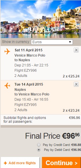 BENETKE – NEAPELJ – BENETKE www.easyjet.com (mala ročna prtljaga)