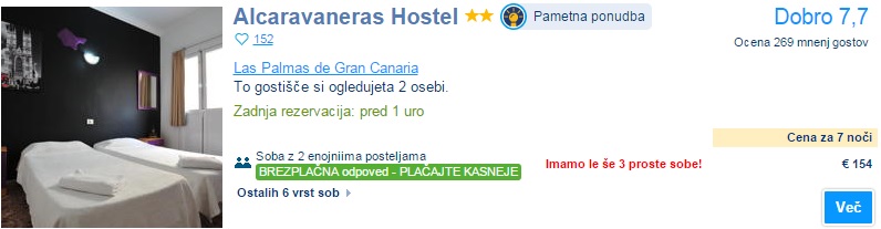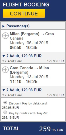 Privoščite si počitnice na Kanarskih otokih. Gran Canaria in je priljubljena počitniška destinacija z razvitimi počitniškimi naselji na jugu ter živahnim in modernim Las Palmasom na severu. Počitnice na tem otoku obljubljajo celoletno toplo in suho vreme ter veliko osupljivih plaž vse okoli otoka. Tja lahko v juliju iz Bergama letite za 130 €, če pa temu prištejemo še 7x nočitev, potem te bodo počitnice prišle samo 207 €/osebo, če potujeta 2 osebi. Letalski prevoznik je Ryanair.
