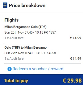 BERGAMO – OSLO (TORP) – BERGAMO www.ryanair.com (ročna prtljaga)