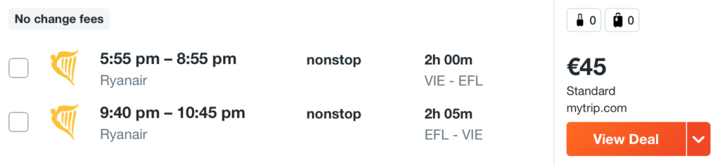 VIENNA – KEFALONIA – VIENNA – mala ročna prtljaga
