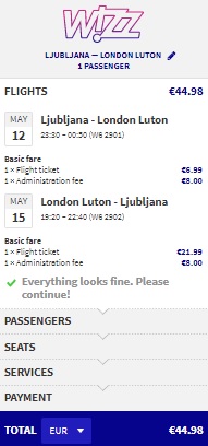 LJUBLJANA – LONDON – LJUBLJANA (www.wizzair.com) – ročna prtljaga