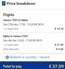 TREVISO – MALTA – TREVISO (www.ryanair.com) – ročna prtljaga