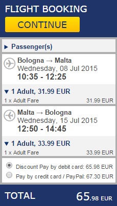 BOLOGNA – MALTA – BOLOGNA (www.ryanair.com) – ročna prtljaga