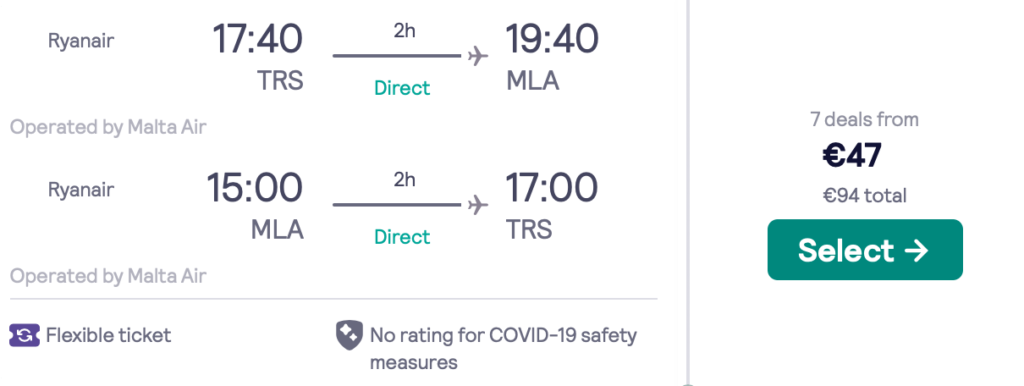 TRIESTE – MALTA – TRIESTE – mala ročna prtljaga