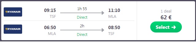 TREVISO – MALTA – TREVISO (www.ryanair.com) – ročna prtljaga