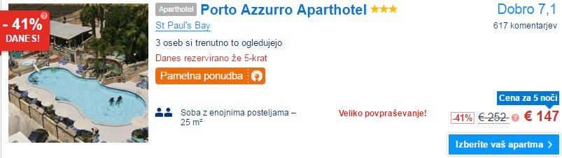 V mesecu maju se ti ponuja možnost za odličen pobeg na sončno Malto. To je odlična destinacija za družinske počitnice in romantičen oddih. Na voljo je kar nekaj terminov. Kot primer smo vzeli termin med 19. – 24. majem v katerega je vključen povratni letalski prevoz in hotel (5x nočitev). Vse to se ti ponuja za samo 136 €/osebo, če potujeta 2 osebi. Za transfer do letališča preveri www.goopti.com. Odhod je iz Trevisa.