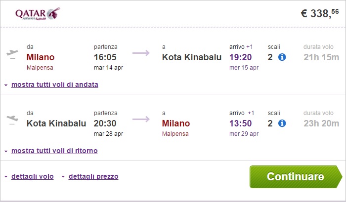 MILANO – KOTA KINABALU – MILANO (www.budgetair.it)