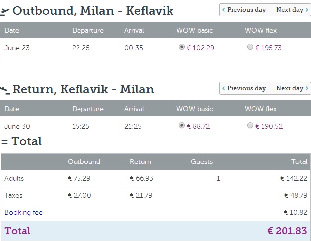 MILANO – KEFLAVIK (www.wowair.com) – ročna prtljaga