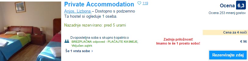 Primer: 4x nočitev z zajtrkom v dvopostelnji sobi (14.-18. junij) 96 €: www.booking.com