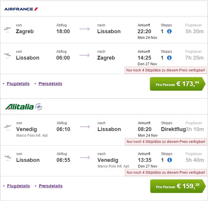 ZAGREB – LIZBONA – ZAGREB – Rezervacija www.flugladen.at – oddana prtljaga