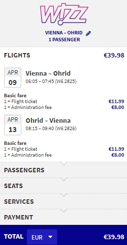 VIENNA – OHRID – VIENNA   (www.wizzair.com) – mala ročna prtljaga
