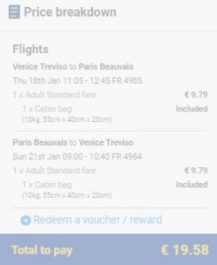 TREVISO – PARIZ – TREVISO (www.ryanair.com) – ročna prtljaga