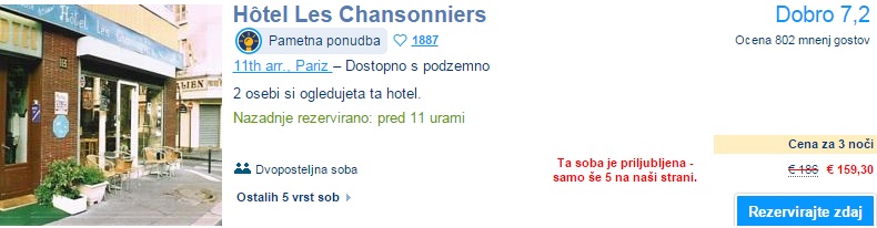 Bi obiskal/a Pariz? Za tebe imamo nadvse mamljivo ponudbo za konec poletja. Nizkocenovnik Ryanair ti v mesecu novembru ponuja super priložnost za oddih v Parizu, kamor lahko poletiš iz bližnjega Trevisa. Povratne letalske vozovnice so ti na voljo že od pičlih 40 € dalje. Na voljo imaš veliko terminov, kot primer pa smo vzeli termin od 25. – 28. novembra. Za hotel (3x nočitev) in povratno letalsko vozovnico za 2 osebi boš odštel/a 240 € ali 120 €/osebo. Preseneti boljšo polovico :)