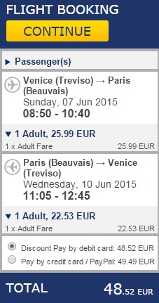 TREVISO – PARIZ (BEAUVAIS) – TREVISO (www.ryanair.com) – ročna prtljaga