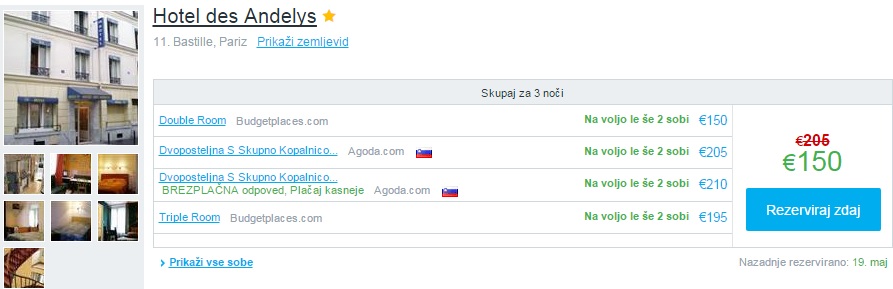 Si za Pariz? Potem obiščite to nadvse romantično mesto, ki ponuja neverjetno možnost za raziskovanje in ogledov, in tako navduši še tako zahtevne popotnike. Nizkocenovnik Ryanair vam v mesecu juniju ponuja super priložnost za oddih v Parizu, kamor poletite iz bližnjega Trevisa. Povratne letalske vozovnice so vam na voljo že od 49 € dalje. Na voljo imate veliko terminov, kot primer pa smo vzeli termin od 7. – 10. junija. Za hotel (3x nočitev) in povratno letalsko vozovnico za 2 osebi boste odšteli 248 € ali 124 € na osebo. Presenetite boljšo polovico :)