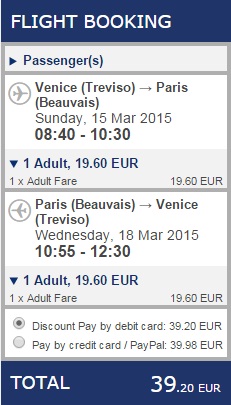 TREVISO – PARIZ (BEAUVAIS) – TREVISO  (www.ryanair.com) – ročna prtljaga