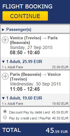 TREVISO – PARIZ – TREVISO (www.ryanair.com) – ročna prtljaga