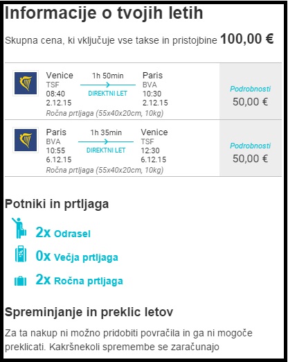 TREVISO – PARIZ – TREVISO (www.nizkocenovci.si) – ročna prtljaga