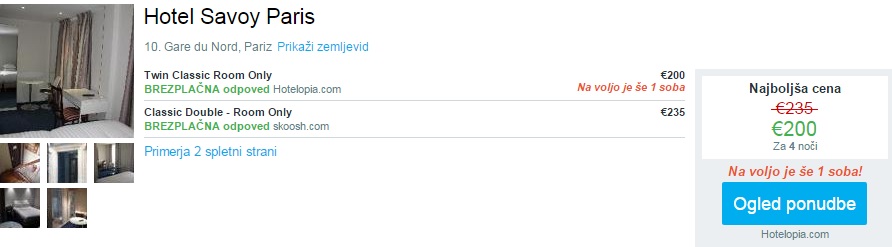 Bi obiskal/a čudoviti Pariz in to v prazničnem času? Za tebe imamo nadvse mamljivo ponudbo. Nizkocenovnik Ryanair ti v mesecu decembru ponuja super priložnost za oddih v Parizu, kamor lahko poletiš iz bližnjega Trevisa. Povratne letalske vozovnice so ti na voljo že od pičlih 50 € dalje. Na voljo imaš veliko terminov, kot primer pa smo vzeli “Miklavžev termin” termin od 2. – 6. decembra. Za hotel (3x nočitev) in povratno letalsko vozovnico za 2 osebi boš odštel/a zgolj 150 €/osebo. Preseneti boljšo polovico :)