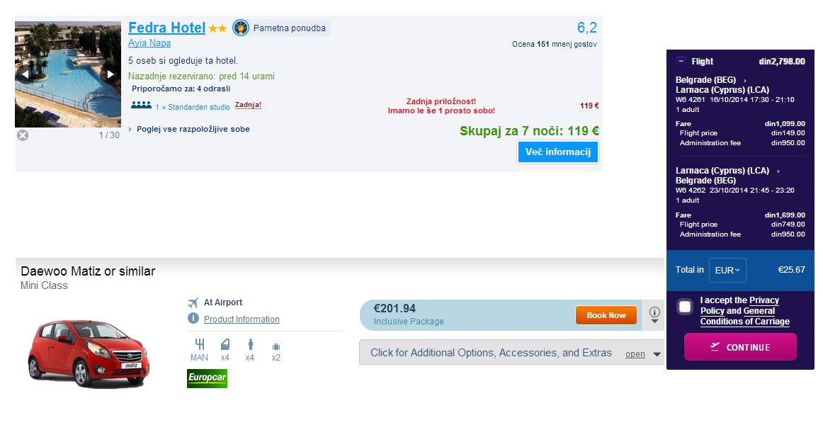 BEOGRAD – LARNAKA (www.wizzair.com) – mala ročna prtljaga (danes in jutri ima Wizz air akcijo -33% pri nakupu dodatne prtljage)