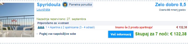 Predstavljamo vam idejo za poceni počitnice na grškem otoku Kefalonija. Je največji otok v Jonskem morju in ga krasijo čudovite plaže. Kot primer smo vzeli termin med 15. – 22. oktobrom v katerega je vključen transfer do letališča in nazaj, povratni letalski prevoz, hotel apartma in rent a car za vse dniCena 635 € ali 159 €/osebo. Res poceni! Vse kar potrebujete je to, da imate svoje prevozno sredstvo in da zberete ekipo 4 ljudi. Odhod je iz letališča v Pisi.