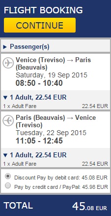 TREVISO – PARIZ – TREVISO (www.ryanair.com) – ročna prtljaga