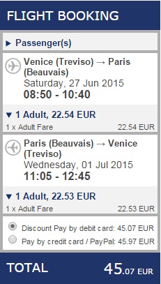 TREVISO – PARIZ (BEAUVAIS) – TREVISO (www.ryanair.com) – ročna prtljaga