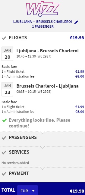 LJUBLJANA – CHARLEROI – LJUBLJANA www.wizzair.com (mala ročna prtljaga)