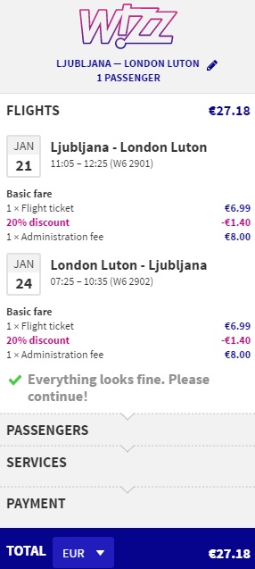 Gremo na razprodaje! Ste za šoping v Londonu? Super cene povratnih letalskih vozovnic nizkocenovca Wizz air. Tako lahko poletite iz Ljubljane v London za 27 €! (povratna letalska vozovnica). Pohitite in si zagotovite poceni sedež. Rezervacijo naredite na spletni strani www.wizzair.com.