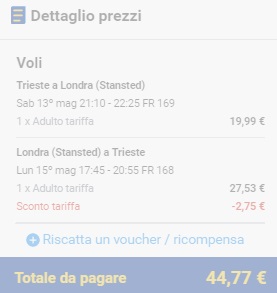 Povratna karta iz Trsta v London 45 €