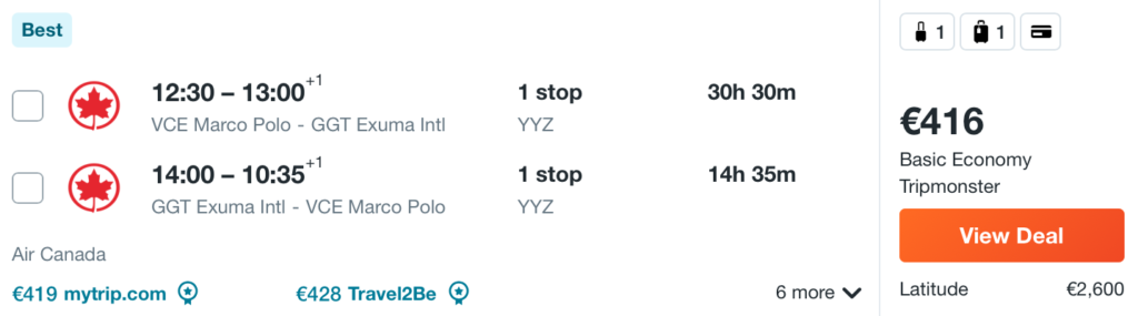 Ponuja se vam odlična priložnost, da si privoščite poceni dopust na Bahamih. Arhipelag več kot 700 otokov, ki leži med ZDA in Kubo, ponuja nešteto rajskih peščenih plaž. Bogato morsko življenje pa vam Bahame ponuja kot odlično destinacijo za potapljanje in raziskovanje kristalno čistega morja. Celo plavanje s prasici! Letalski prevoznik Air Canada vas iz Benetk prihodnje leto odpelje na Karibe že za 416 € (povratna letalska vozovnica). Oddana prtljaga je vkljucena v ceno! Na poti do Bahamov je dolgi postanek v Torontu, kar lahko izkoristite za kratek ogled mesta. Aktualne pogoje vstopa v drzavo Bahamas si lahko preberete tukaj.