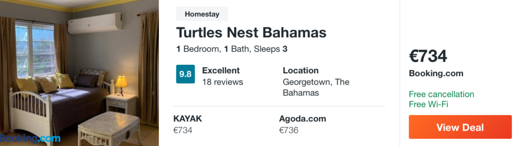 Prenočišče na Bahamih (Great Exuma Island) 734 € (7 nocitev)