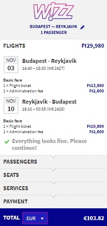 BUDIMPEŠTA – KEFLAVIK – BUDIMPEŠTA Rezervacija (www.wizzair.com)