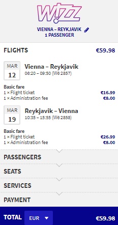 VIENNA – KEFLAVIK – VIENNA Rezervacija (www.wizzair.com)
