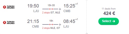 Zamenjajte okolje in doživite nekaj novega in divjega. Iz naše Ljubljane na čudovito Šrilanko lahko letite za samo 424 € (povratna letalska vozovnica). Na voljo je več terminov vse od novembra do aprila prihodnje leto. Letalski prevoznik je več kot odlični Turkish Airlines. In še dobra novica. Od 1.8 do 31.1.2020 so za Slovenske državljane ukinili vizum. Koga boste vzeli s seboj?