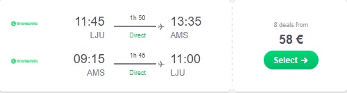 Nizkocenovni letalski prevoznik Transavia je s pomladjo pričel novo linijo in sicer med najbolj odštekanim mestom v Evropi (Amsterdam) in našo Ljubljano. Torej direktni leti so na voljo že za samo 58 €! Na voljo je več terminov v mesecu marcu prihodnje leto. Gremo?