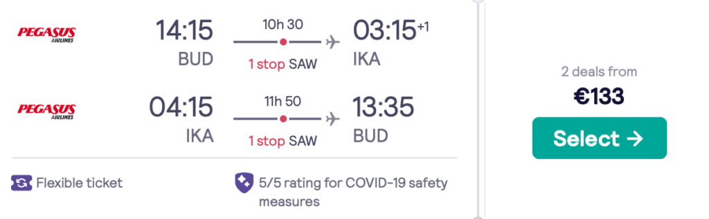 Odlične cene povratnih letalskih vozovnic iz Budimpeste v Teheran. Z letalsko družbo Pegasus Airlines lahko letite v Iran za samo 133 €! V ceno je vključena ročna prtljaga. Karta je fleksibilne narave. Na voljo je več terminov v mesecu novembru in decembru letos.