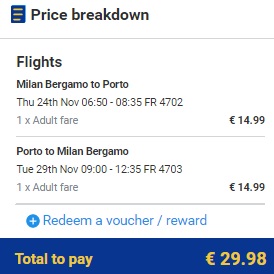 BERGAMO – PORTO – BERGAMO www.ryanair.com (ročna prtljaga)
