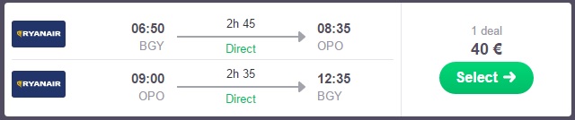 Ponuja se vam odlična priložnost za počitnice na Portugalskem. Direktni leti v Porto so sedaj iz Milana (Bergamo) v mesecu januarju mogoči že za 39 €. Samo mesto pa je center znanega vina Portovec, ki je skupaj z ogledom veličastnih vinskih kleti vredno degustiranja. Ponuja se vam pa tudi popotovanje po celotni Portugalski, saj se da v 1 tednu videti in doživeti resnično veliko te dežele. .