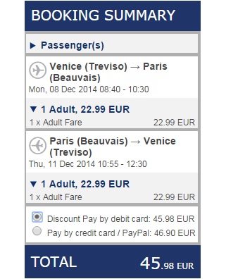 TREVISO – PARIS (BEAUVAIS) (www.ryanair.com) – ročna prtljaga