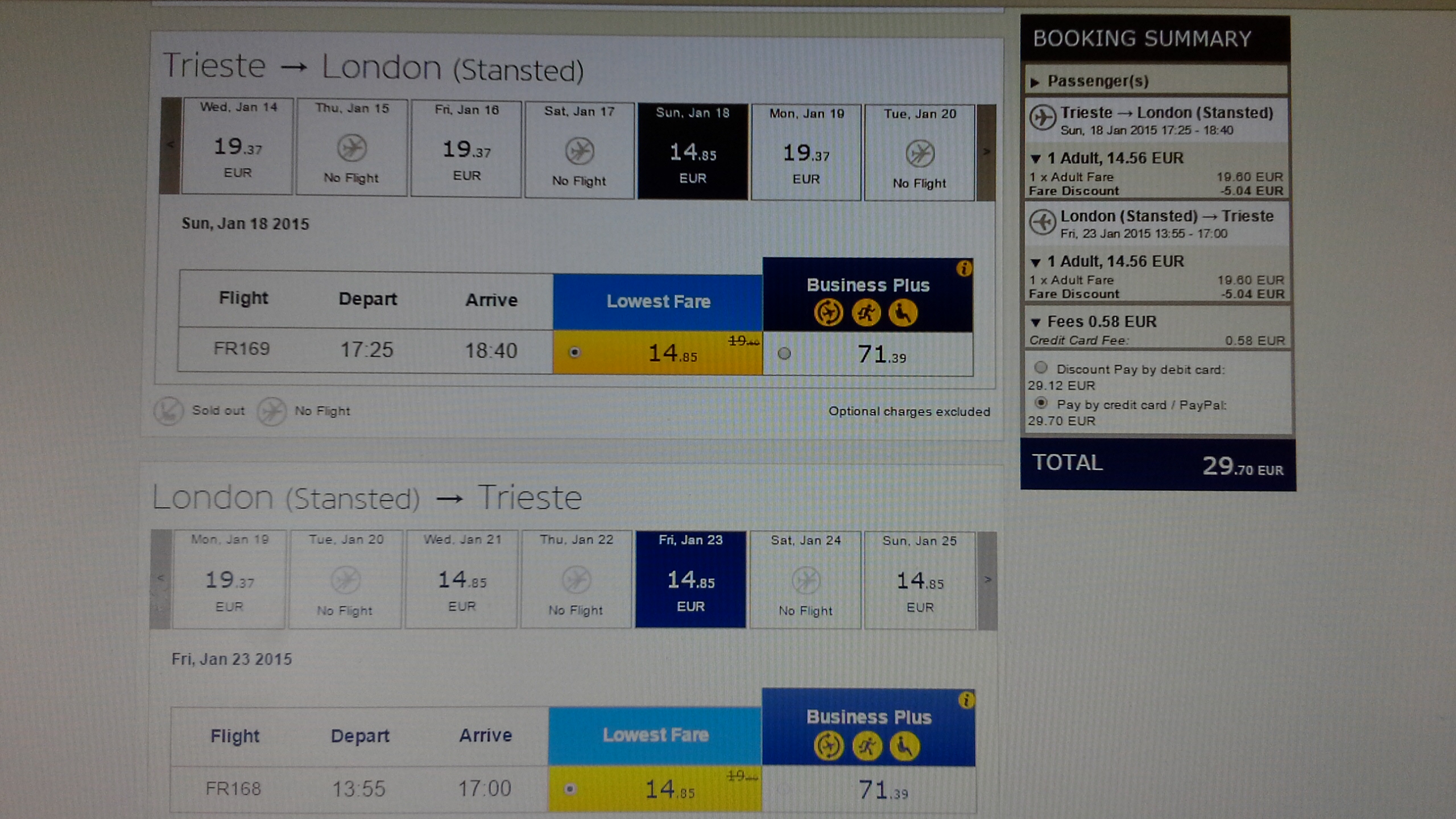 TRST – LONDON – TRST   (www.ryanair.com) –  ročna prtljaga