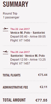 Kaj, če bi naslednje poletnepočitnice preživeli na magičnem Santoriniju? Španski nizkocenovnik Volotea vas popelje iz Benetk na Santorini v mesecu juniju 2017 že za 77 €/osebo. Če dodamo k tej ceni še hotel** (7 nočitev) potem pridemo do cene 170 € na osebo v primeru, da potujeja 2 osebi. Kot primer smo vzeli termin 22.6 – 29.6. 2017. Rezervacija letalskih vozovnic www.volotea.com.