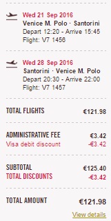 NOROOOO! Kaj, če bi letošnje počitnice preživeli na magičnem Santoriniju? Španski nizkocenovnik Volotea te popelje iz Benetk na Santorini v mesecu septembru 2016 že za 122 €/osebo. Če dodamo k tej ceni še hotel (7 nočitev) potem pridemo do cene 192 € na osebo v primeru, da potujeja 2 osebi. Kot primer smo vzeli termin 21.9 – 28.9. 2016. Rezervacija letalskih vozovnic www.volotea.com.