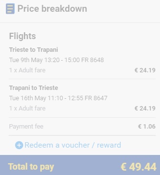 TRST – TRAPANI – TRST www.ryanair.com – ročna prtljaga