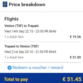 TREVISO – TRAPANI – TREVISO www.ryanair.com – ročna prtljaga