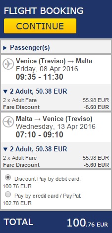 TREVISO – MALTA – TREVISO (www.ryanair.com) – ročna prtljaga