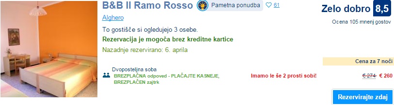 Počitnice za 4. Ste za počitnice na sončni Sardiniji? Ponujamo vam odlično priložnost za pobeg na ta prekrasen otok v mesecu maju. Cene povratnih letalskih vozovnic se začnejo že pri 44 €. Za vas smo kot primer vzeli termin od 16.5 – 23.5. 2017. Tako boste za 7 nočitev in povratno letalsko vozovnico odšteli samo 131 €/osebo, če potujejo 4 osebe. Odhod in prihod je iz Bologne.