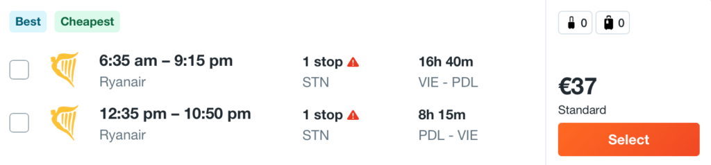 VIENNA – PONTA DELGADA – VIENNA – mala ročna prtljaga