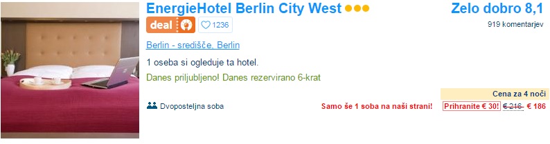 Prenočišče: 3x nočitev v dvoposteljni sobi, 106 €: www.hotels.com